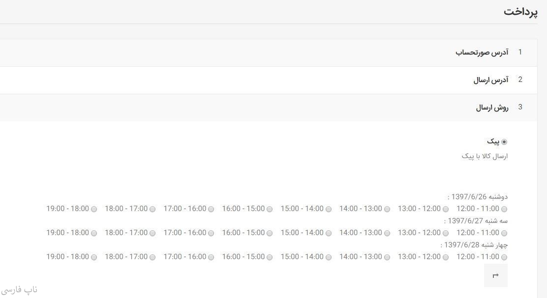 1. پس از تکمیل سفارش، می توانید روزها و زمان تحویل را انتخاب کنید